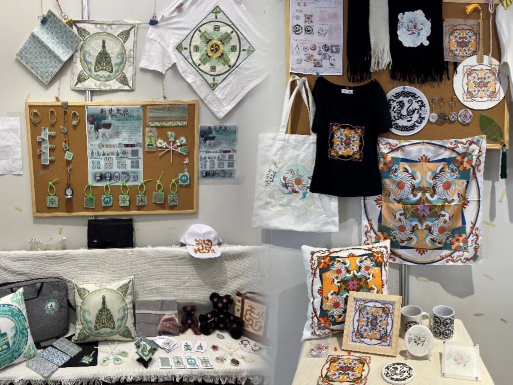 服饰设计荆楚风情,古今融合创意涌。12月16日,艺术学院展厅举办2022级服装与服饰设计专业的《服饰图案设计》课程作业展览。此次展览以荆楚文化为核心设计元素,展品丰富多样,包括服饰图案效果图、成品服饰以及独具特色的周边文创产品,为观众带来了一场视觉盛宴。步入展厅,浓郁的荆楚文化气息扑面而来。服饰上,凤鸟图案栩栩如生,振翅欲飞,其灵动羽冠与飘逸尾羽尽显楚人尊凤尚赤的传统,仿佛诉说着古老的图腾信仰;云纹舒卷自如,以细腻的楚绣针法勾勒,演绎出楚地苍穹的浪漫奇幻意境。此外,从楚地漆器、编钟中提取的几何元素,经撞色、对称等手法处理,展现出古韵新姿;阳新布贴古朴精湛,花鸟鱼虫、人物故事等图案拼接而成,生动传递着黄石人民的生活情感;西塞神舟会等非物质文化遗产元素巧妙融入,彰显传统民俗的神秘庄重;黄石矿石的独特纹理,如孔雀石的绿色脉络、方解石的晶莹质感、铁矿石的古朴韵味,也被学生们以独特创意转化为时尚的服饰图案。展览期间,专业教师现场讲解设计背后的灵感来源、素材采集途径与工艺适配方法,吸引了众多师生及艺术爱好者前来观摩交流,有力促进了荆楚文化在服饰设计领域的传承与创新。