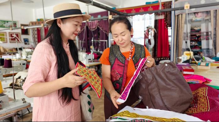 据悉,殷海霞还以拼布绣为媒介积极致力于民族团结工作。她带出的徒弟毕业后成为贵州的非遗传承人,成为当地的非遗文创主力。今年8月,殷海霞参加省妇联组织的“鄂疆姐妹一家亲·‘三送’携手共前行”主题考察交流活动,为阿拉山口市的妇女姐妹们开展手工技艺培训,与温泉县巾帼民族工艺专业合作社的乌云吉尔格丽达成深度合作意向,共同描绘民族团结的美丽画卷。(校党委统战部 艺术学院 供稿)