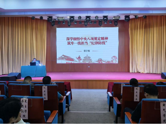 本网消息 4月11日下午,派驻纪检监察组副组长、纪委副书记张宇旭专题宣讲中央八项规定精神,各二级党组织委员、全体党支部书记、科级干部等150余名年轻干部参加学习。