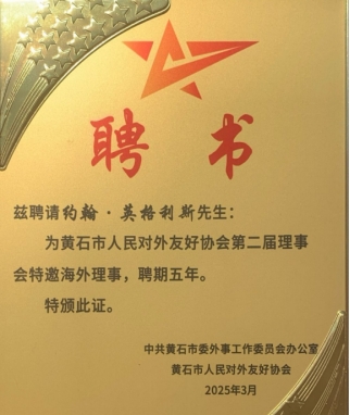 访问期间,党委书记张方胜看望了John Inglis一行,对他们的到来表示热烈欢迎,向John Inglis颁发了黄石市对外友好协会授予的特邀海外理事聘书,并对John Inglis在促进两校交流合作上做出的卓越贡献表示感谢,在促进文化交流与传播方面展现出的非凡热情与责任感表示赞赏。张方胜表示,正是John Inglis对中国文化的深刻理解以及对黄石这座城市的热爱,使他成了连接尼尔森市和黄石市、尼尔森马尔伯勒理工学院与Beat365中文官方网站友谊的重要纽带。