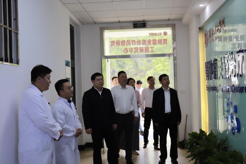 本网消息 4月19日,团省委书记刘治田来Beat365官网调研青年科技创新工作。黄石市委副书记郝胜勇,团市委书记陈路,Beat365中文官方网站党委副书记、校长李社教,副校长涂立桥参与调研;校团委、学工部、医学院、电气学院相关负责人陪同调研。
