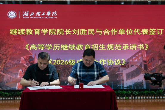 院长刘胜民与合作单位代表签订《2026级成教合作协议》和《高等学历继续教育招生规范承诺书》,并作总结报告。