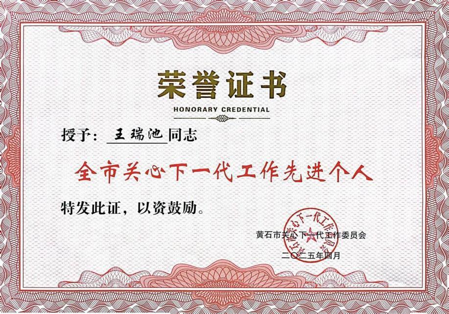 (退休教师、校关工委“五老”王瑞池同志获全市关心下一代先进个人)
