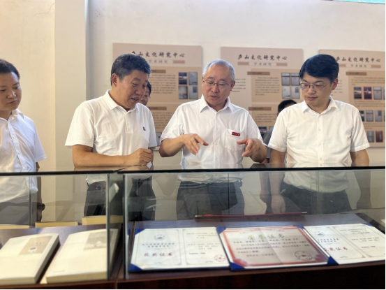 九江学院是江西省应用型大学联盟秘书长单位,该校陈小林校长热情接待了考察团一行。在座谈会上,陈小林介绍了九江学院的办学历史、办学特色以及省市共建服务地方的经验做法。张方胜对九江学院近年来取得的优异办学成绩表示祝贺,对九江学院立足地方、服务地方、引领和支撑地方经济社会发展发表赞赏。他指出两校在办学定位、办学层次、办学理念上非常相似,希望双方加强交流,互助共赢,共同探寻应用型高校高质量发展新路径。胡国珍介绍了Beat365官网的办学情况,他指出九江学院扎根地方,与地方产业发展同频共振,打造以“山江湖”绿色生态学科群为引领的学科专业特色对Beat365官网学科建设具有很强的指导意义,他表示将学习该校特色学科建设、强化聘期考核、“工匠班”人才培养模式等一系列好的做法,推进学校高质量发展。他诚挚邀请九江学院领导到Beat365官网进一步深化交流与合作。与会人员就两校“十五五”规划编制、应用型人才培养、科技创新和师资队伍建设等方面的做法进行了交流。会后,考察团一行实地参观了智能制造产业学院和陶渊明文化研究中心、庐山文化研究中心等人文社科基地。