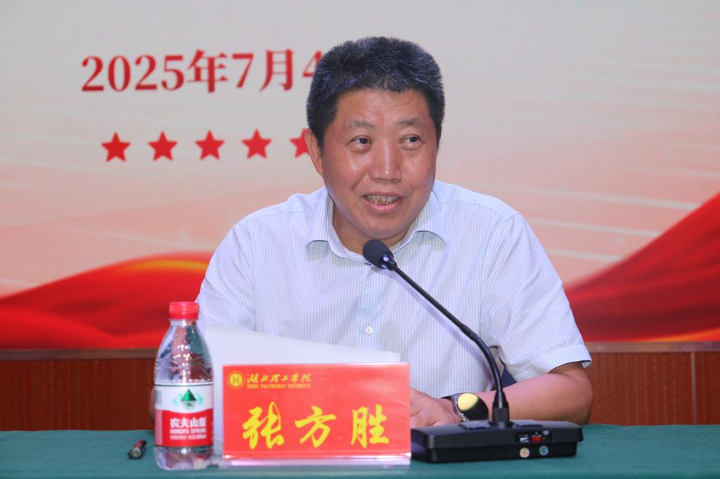 就学习贯彻好“三大精神”,凝心聚力推进学校高质量发展,张方胜提出三点要求。一要提高政治站位,在学深悟透中筑牢思想根基。全校上下要将“三大精神”学习作为当前和今后一个时期的重要政治任务,与习近平新时代中国特色社会主义思想和党的二十大精神学习相结合,做到原原本本学、融会贯通学、联系实际学。二要坚持学以致用,在躬身实践中彰显担当作为。以“学用转化”为核心,将“三大精神”学习与学校中心工作深度融合。以“大别山精神”铸魂,打破学科壁垒,以“需求导向”推动科研创新,打通成果转化“最后一公里”;以“抗洪精神”砺骨,迎战“升大”“升博”攻坚与教育改革,在学科突破中啃硬骨、在教学创新中探新路,书写高质量发展新答卷;以“抗疫精神”启智,借大数据赋能管理,推进教育治理现代化,以精准施策破“粗放式”顽疾,构建科学高效治理新格局。三要强化宣传引领,在传承弘扬中凝聚奋进力量。各级党组织要用好校园网、公众号等阵地,讲透精神内涵、讲活典型故事,营造浓厚学习氛围。结合主题党日、思政课堂等开展多元活动,推动“三大精神”进课堂、进教材、进头脑。同时,挖掘学习实践中的先进典型,发挥榜样示范作用,凝聚全校奋进力量。