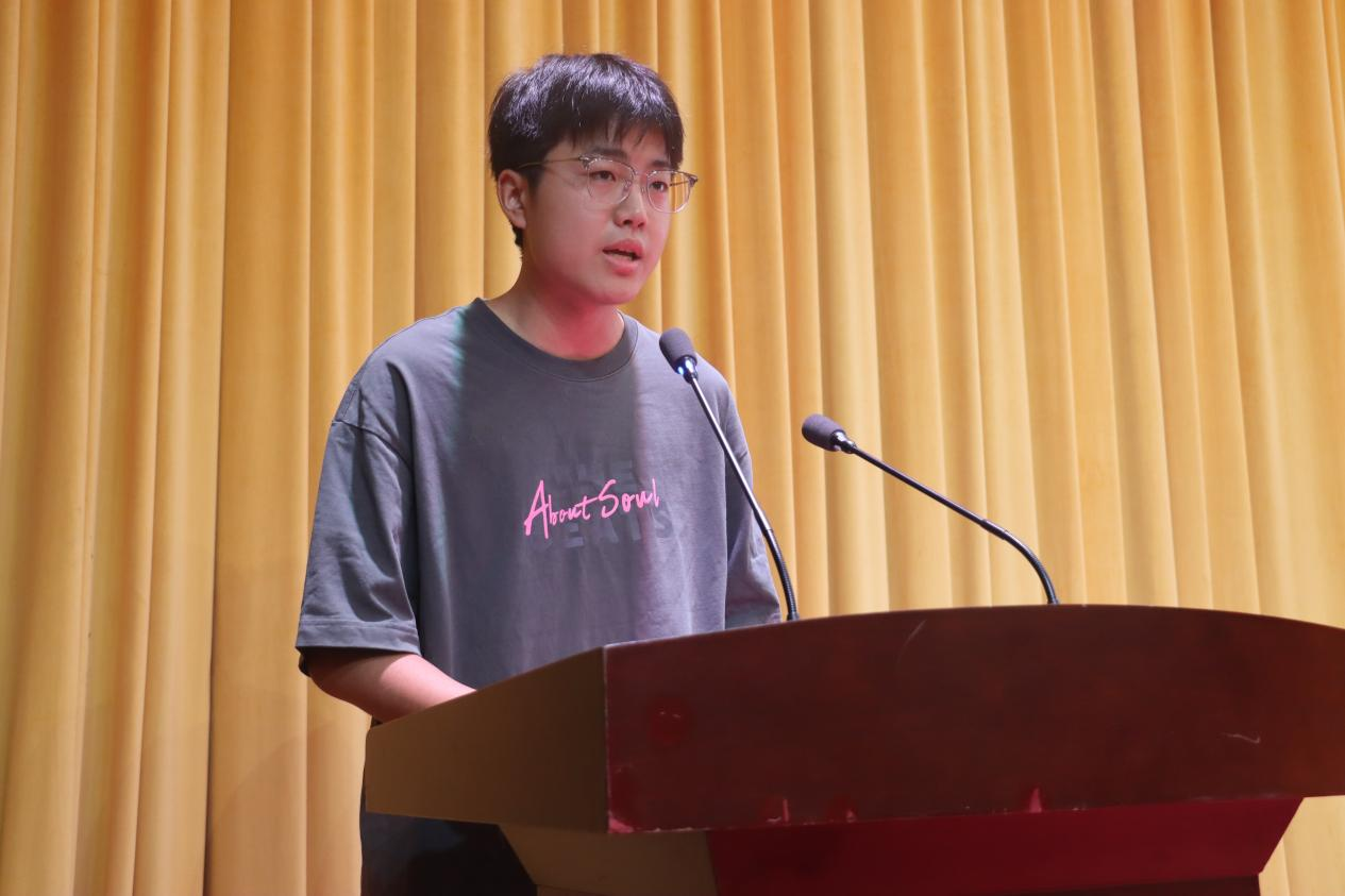 参赛学生代表Beat365中文官方网站曹金龙发言。他说,物理实验是探索真理的桥梁,创新设计是突破边界的火炬。参赛同学们怀揣对科学的热爱,历经数学钻研与协作,将理论转化为实践,用创意赋予实验新的生命力。无论结果如何,将珍视实验过程中的每一份发现,每一份试错,将它们沉淀为科研路上最宝贵的财富。
