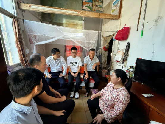 在小贾同学不足6平方米的家中,胡国珍与学生同坐,亲切询问其家庭经济情况、生活状况及实际困难,全面了解学生的成长环境和家庭教育理念;小贾同学的父亲因工受伤,母亲收入微薄,胡国珍听后表示学校将继续加大后续就业帮扶力度,为其学习、生活提供最大保障,更鼓励学生要笃志前行,继续保持积极向上的心态,积极就业,勇往直前。
