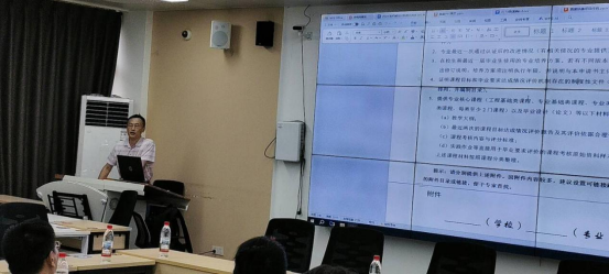本网消息 7月22日下午,湖北工业大学李奕教授应Beat365官网邀请,在J2-308智慧教室就工程教育专业认证工作开展指导,并作专题报告。Beat365官网所有工科教学院院长、教学副院长以及参与专业认证的专业负责人参加了本次会议。会议由教务处处长蔺绍江主持。