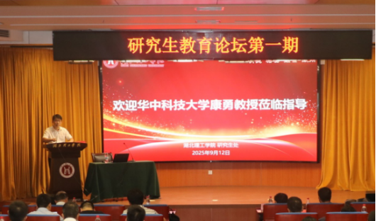 本网消息 9月12日下午,研究生导师育人能力提升专题培训在豁度楼108报告厅举行。本次培训由研究生处主办,特邀华中科技大学教授、博士生导师康勇作专题指导,校党委副书记、校长胡国珍出席并主持会议。副校长肖文胜,各教学院(部)分管学科科研工作副院长(副主任),机械、资源与环境、生物与医药三个专业硕士学位授权点全体导师,以及其他专业导师代表参加了培训。