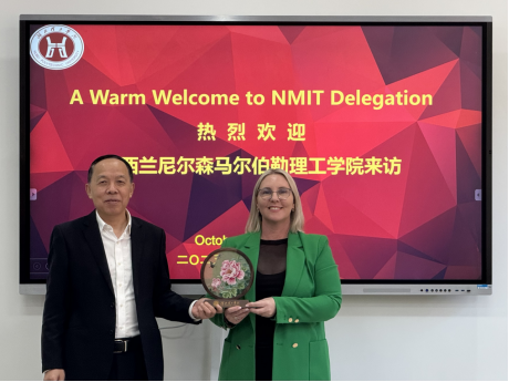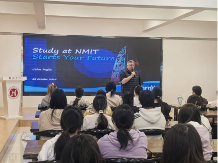 会后,凯特·尼姆副校长一行赴艺术学院观摩课堂教学,慰问本学期NMIT派驻Beat365官网的三位外籍教师,并主持召开项目说明会。国际课程主任约翰·英格里斯详细介绍了NMIT的校园环境、教学资源、入学要求、学业支持政策及视觉传达设计专业毕业生就业前景,并与项目学生进行了现场互动交流。 (通讯员 周程)