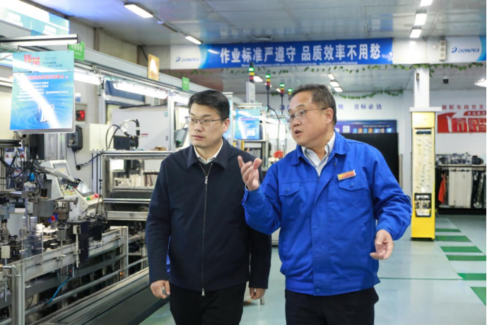 胡国珍一行先后参观了企业文化展示厅、装配加工车间、研发测试中心,实地了解东贝集团的成长历程、发展模式和科技创新。