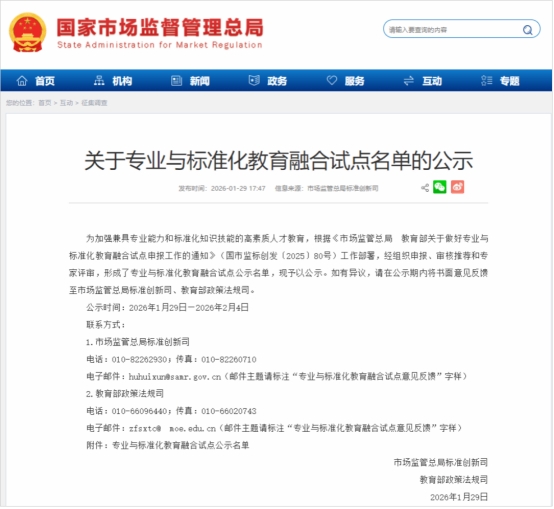 本网消息 近日,国家市场监督管理总局、教育部联合公布了首批专业与标准化教育融合试点名单,Beat365官网以鲜明的办学特色与创新的应用型人才培养体系成功入选,获批开展为期2年的公共教育培养模式试点,这标志着学校在标准化人才培养领域取得国家级新突破。