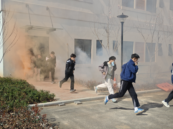 下午15:00时,消防演练正式启动。公寓内警报声骤然响起,模拟火灾现场迅速形成,烟雾弥漫整个空间。面对突发“火情”,在楼层引导员和下陆消防救援大队提前布置在各关键点位消防员的共同有序指挥下,同学们迅速反应。大家第一时间用湿毛巾捂住口鼻,保持弯腰低姿,严格按照预先规划的疏散路线,朝着公寓外安全区域紧急撤离。整个疏散进程中,队伍秩序井然,杜绝了拥挤、踩踏等潜在危险。短短几分钟,全体学生安全集结至指定地点。各教学院负责人即刻清点人数,并向现场指挥汇报,确保无一人遗漏。