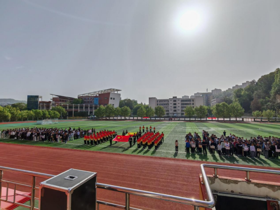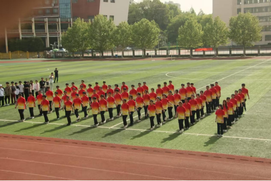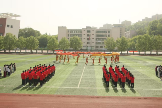 现场齐诵《少年中国说》铿锵有力,广播体操整齐划一,十二节锦龙表演灵动飘逸,文艺展演环节以传统文化与现代活力交织,点燃全场热情。700人青春跑方阵如春日彩带环绕校园,成为跃动的风景线。