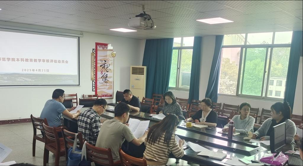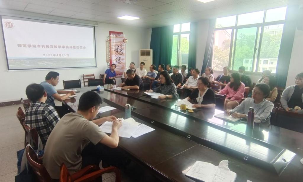 本网消息 为深入贯彻学校关于本科教育教学审核评估工作的相关通知要求,进一步推动师范学院本科各专业的高质量发展,确保学院顺利迎接今年本科教育教学审核评估工作,4月21日下午,师范学院在师范楼407会议室召开了本科教育教学审核评估动员大会。会议由师范学院院长胡邦岳主持,师范学院领导班子成员以及全体教职工参会。
