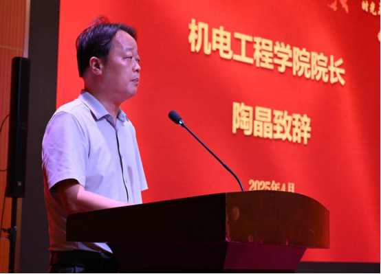 机电工程学院院长陶晶上台致辞,他在回顾毕业生们校园成长历程后,充分肯定了大家在学业和实践中的成绩。陶院长寄语毕业生:“希望你们永葆进取之心,以扎实专业本领勇立时代潮头,母校永远是你们最坚实的后盾!愿你们在未来的人生路上,经受锻炼,闯新路、创新业,不断开辟事业发展新天地!”