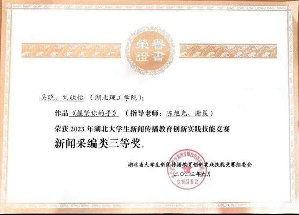 采访作品连续两年获“湖北省大学生新闻传播教育实践技能大赛”三等奖