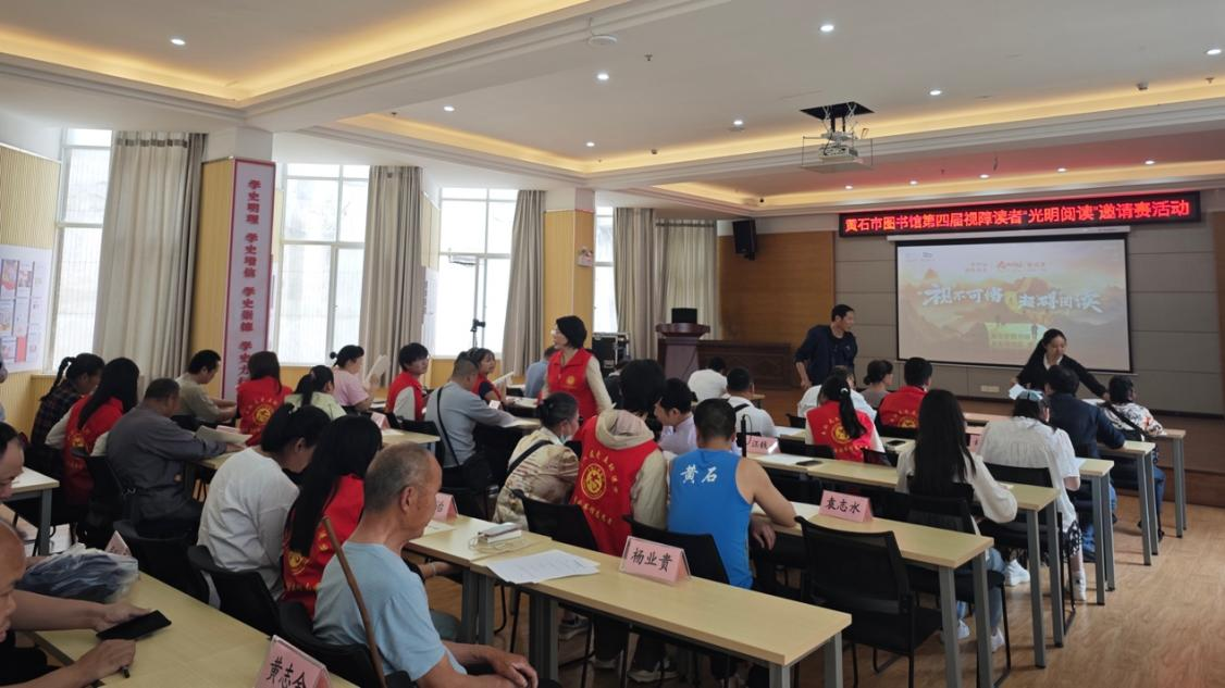 本网消息 4月23日,师范学院网络与新媒体专业学生揭若萱、吴露瑶、孙琪瑜、谭曼青、胡傲航、张宇彤、何荩旸、徐湘怡、黄丽容、赵涛受邀参与黄石市残疾人联合会(简称“市残联”)第四届视障读者“光明阅读”活动。这是网媒学子连续三年参与此活动,其专业表现和公益精神获各方好评。