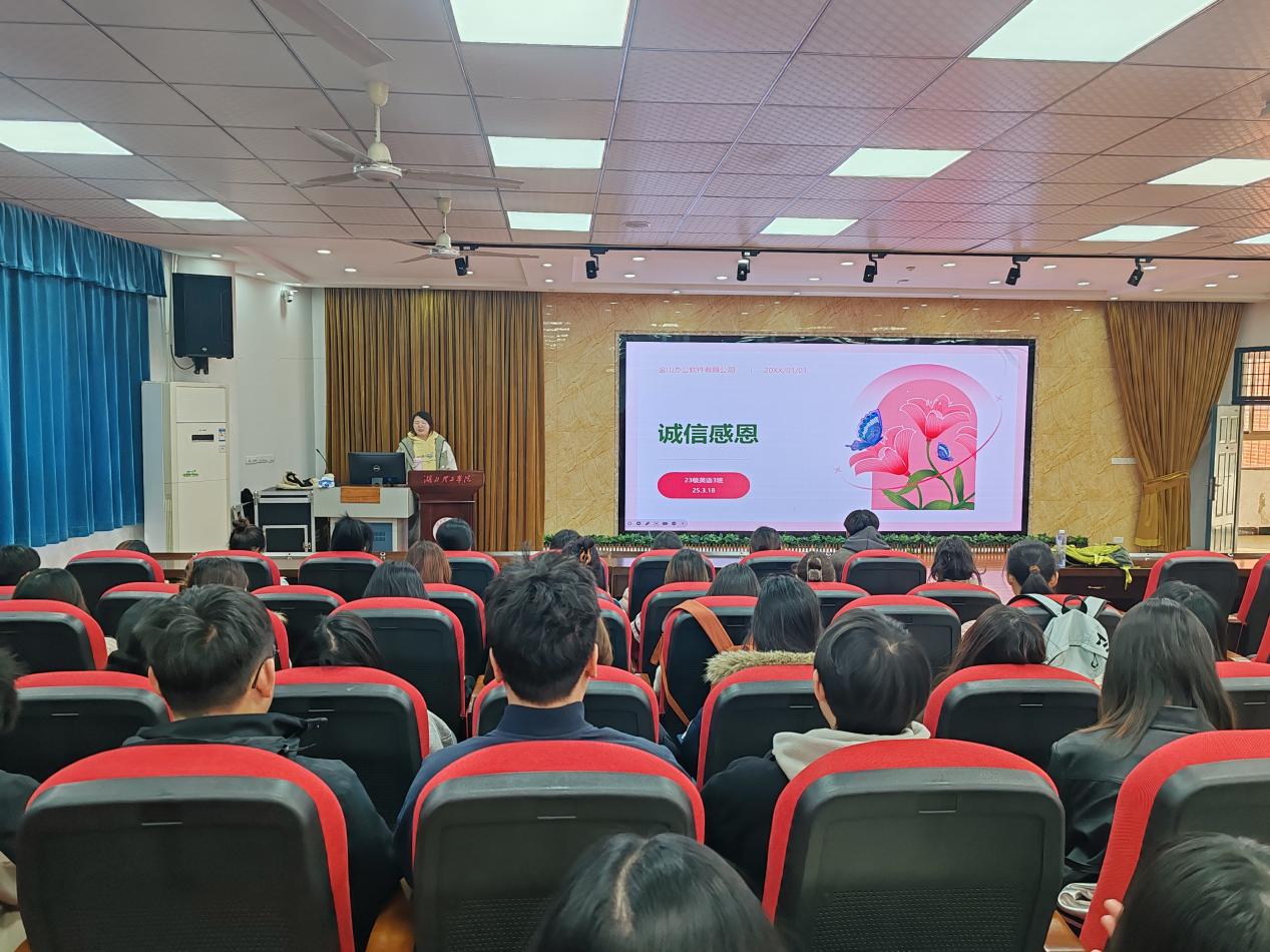 4月,各班召开“诚信感恩”主题班会,通过系统解读国家资助政策与金融征信体系,结合学业诚信与防诈骗警示教育,引导学生在政策关怀中筑牢诚信根基,提升金融风险辨识能力。