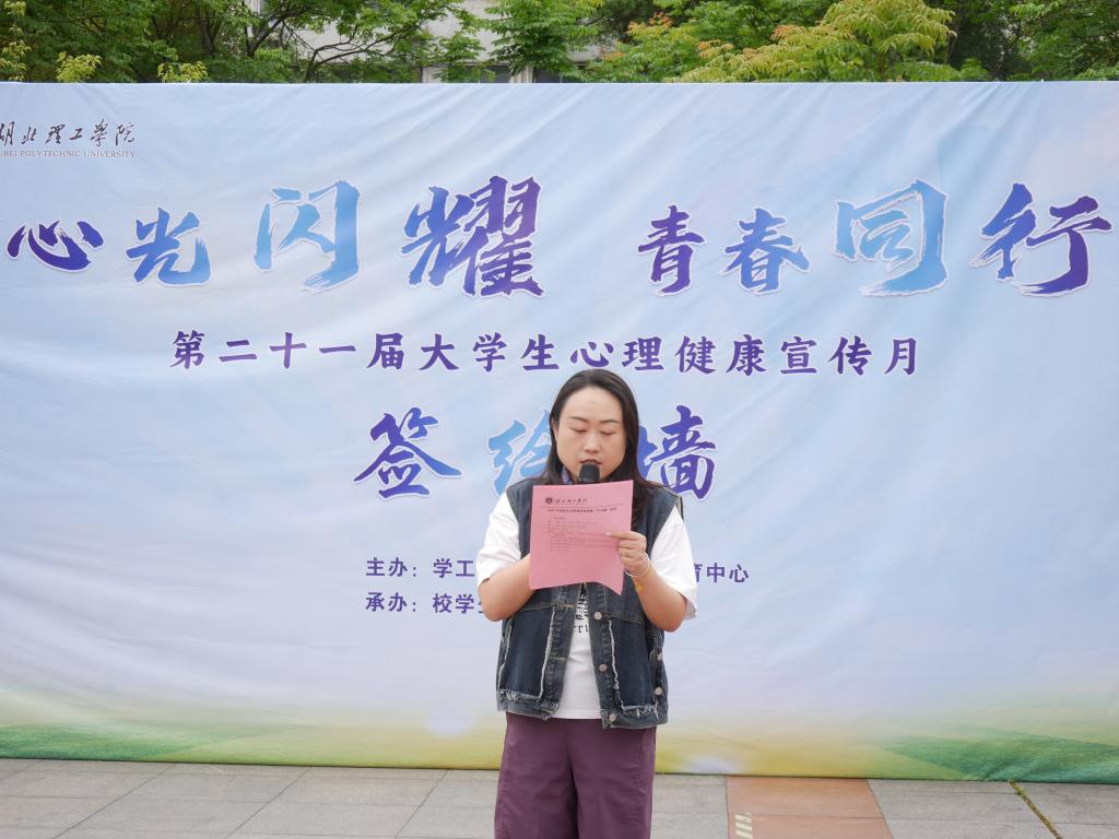本网消息 5月10日,由学工部大学生健康教育中心主办,校学生心理健康部承办“心光闪耀,青春同行”第二十一届大学生心理健康宣传月系列活动启动式暨心理游园会在学校中门广场举行。学工部副部长兼大学生心理健康教育中心主任查贝、大学生心理健康教育中心全体教师,来自13个教学院的心理辅导员、学生代表参加了本次启动式。
