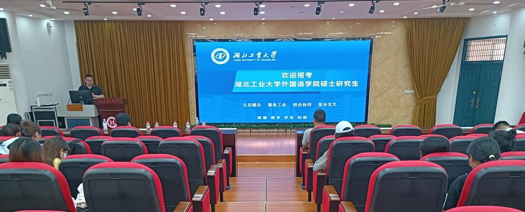 本网消息 5月12日下午,外国语学院在X2-113室举行“研途筑梦・校际携手”考研报考宣讲会,邀请了湖北工业大学外国语学院副院长李池利教授、国际中文教育中心副主任杨哲华博士和翻译硕士导师骨干代表程晓龙博士与2022级英语专业学生面对面交流,活动由外国语学院党总支副书记易定国主持。