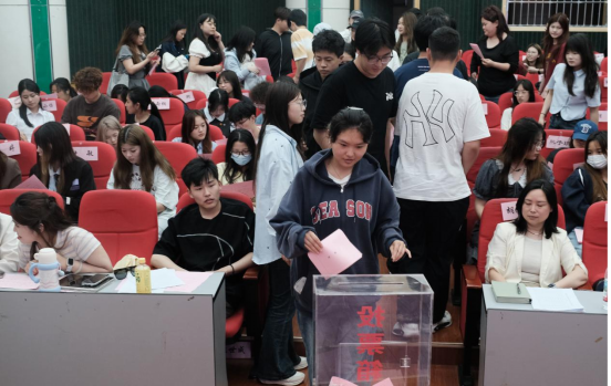 本网消息 5月15日晚,艺术学院第五次学生代表大会在X6-报告厅召开。艺术学院党总支副书记胡增裕、艺术学院学工办全体老师及大会全体代表出席大会。大会由艺术学院团总支学生书记李学明同学主持。