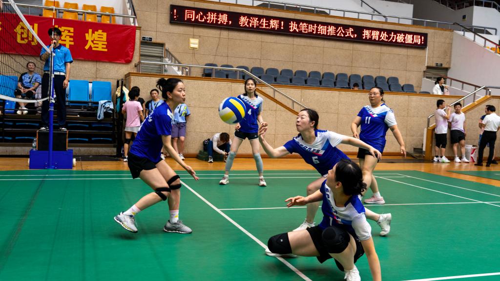 在近两周的激烈角逐中,我院队员斗志昂扬,配合默契,敢打敢拼,扣杀、拦网、扑救……队员们精准应对,严防死守,发扬了不畏强手、拼搏奋进的体育精神。他们在赛场上的每一次拼搏、每一滴汗水,都诠释着“奋进”的精神内涵,共享气排球运动带来的快乐和健康。