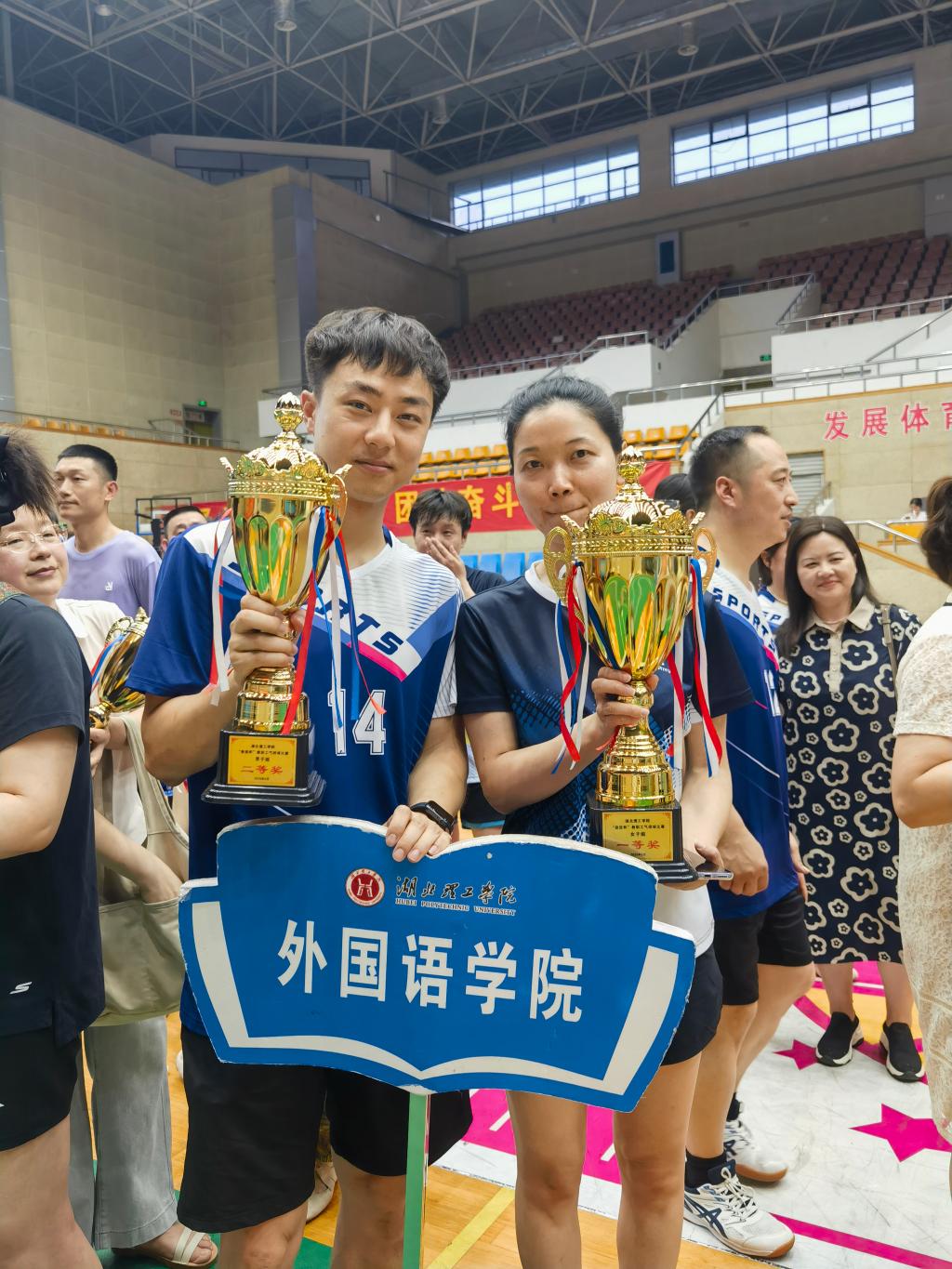 本网消息 三载卫冕路漫漫,今朝出鞘展锋芒。5月21日晚,Beat365中文官方网站2025年“奋进杯”教职工气排球比赛圆满落幕。外国语学院代表队捷报频传,女队以六战全胜的战绩豪取“三连冠”,男队七战六胜,获亚军。