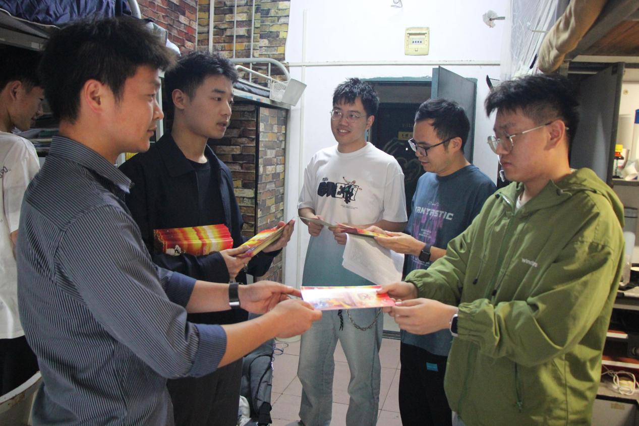 走访过程中,老师们与毕业生们亲切交谈并细致询问每位同学的就业进展和未来规划。对已就业学生,他们送上祝贺并叮嘱职场注意事项;对求职中的同学,耐心分析就业形势,优化简历,推荐岗位。谈及征兵政策时,徐赐灯老师详细介绍入伍条件、发展优势及优待政策,并发放宣传手册。“参军报国是光荣选择,也是人生历练。”曾飞老师鼓励道,“强国必须强军,军强才能国安。热血青春,正该在绿色军营中绽放光彩。同学们应积极响应祖国召唤,踊跃报名应征,为国防事业贡献自己的力量!”