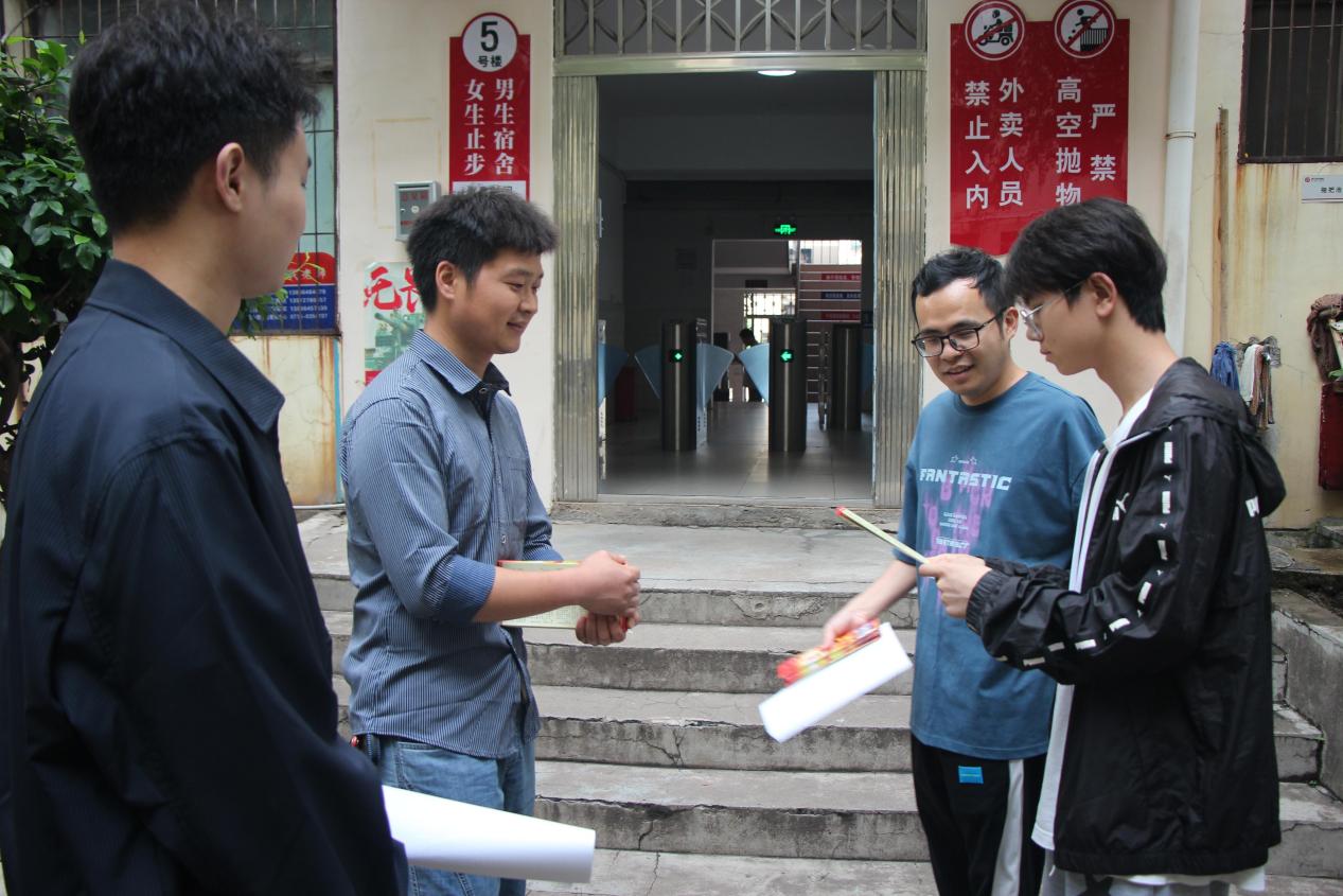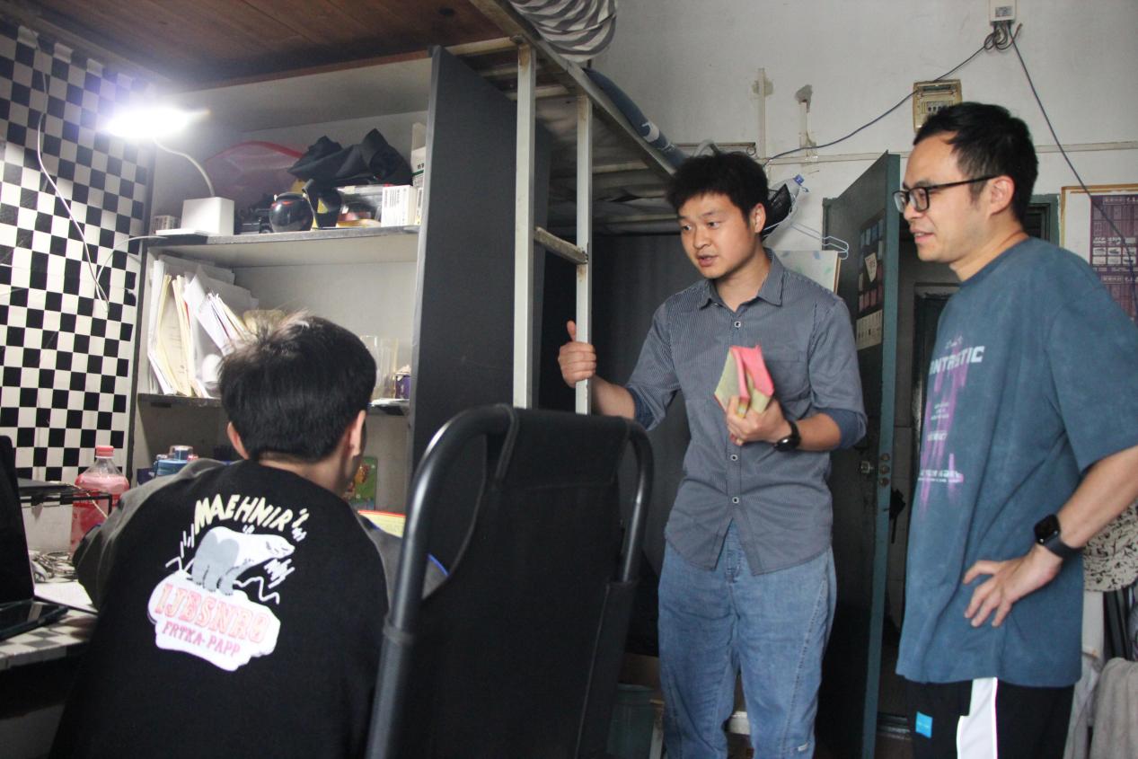 本网消息 为了切实做好毕业生就业服务工作,激发青年学子参军报国热情,5月23号下午在毓成公寓5栋,学校党委学工部徐赐灯,经济与管理学院辅导员曾飞、林壮深入毕业生宿舍,开展就业指导与征兵政策宣传活动,为毕业生送去关怀与方向。