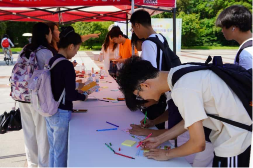 中门广场还特别设置了心愿墙,准备了颜料、画笔和便利贴,为同学们搭建了一个表达自我、传递温暖的平台,同学们纷纷书写自己的青春寄语与成长期待。
