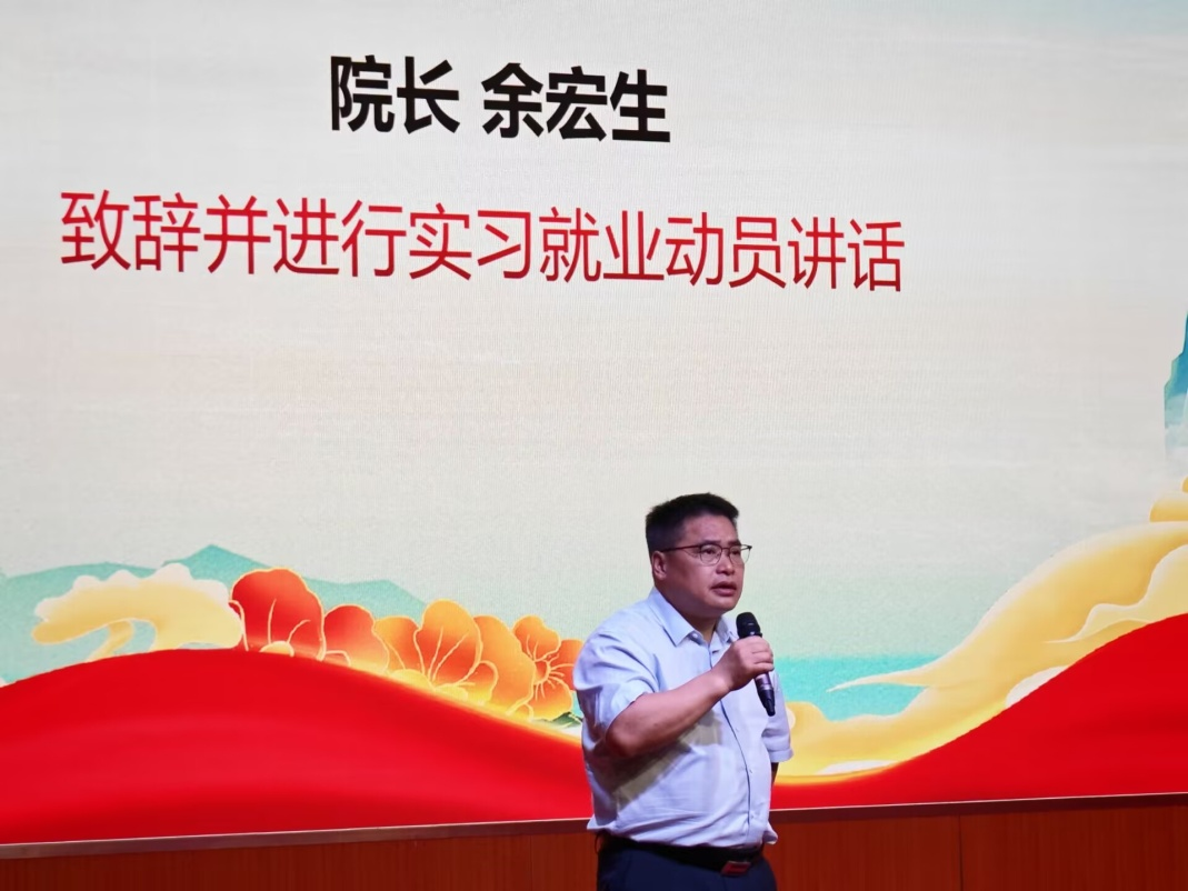 会议伊始,余宏生院长致辞并作实习就业动员讲话。他强调实习就业是学生从校园迈向社会的关键一步,关乎个人职业发展与人生规划。余院长结合当下就业市场趋势,鼓励同学们积极把握实习机会,在实践中积累经验、提升能力,以积极的心态和充分的准备应对就业挑战,同时也对同学们未来在实习就业中的表现寄予厚望,希望大家展现数理学院学子的专业素养与精神风貌。