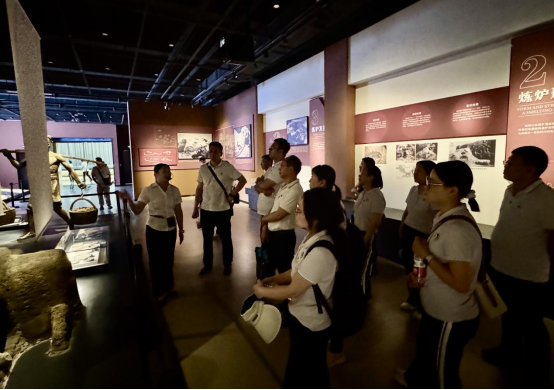 老师们驻足于“采矿有道”展厅的深井模型前,惊叹于古人在没有机械辅助的条件下,用木质框架支撑数十米深井的工程智慧。讲解员介绍,铜绿山古铜矿遗址是我国迄今发现的采冶规模最大、持续采冶时间最长、采冶水平最高、产业链最完整、保存最好的一处大型古铜遗址,其发现一举解决了中国古代青铜器原料来源的历史谜题,证明中国青铜文化是一个独立和完整的发展史,展现了中华民族先民“匠心图强、勇于创新”的精神内核。
