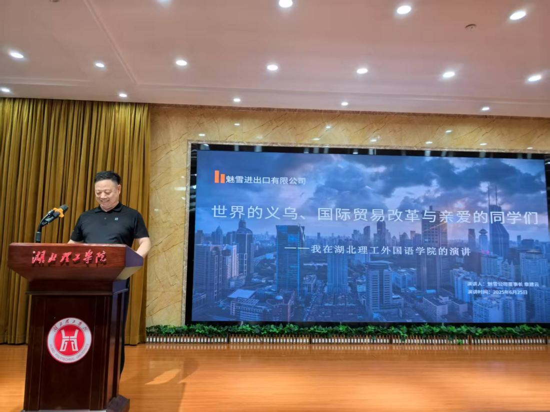 本网消息 为了帮助外语专业学生了解我国国际贸易改革和发展趋势以及未来企业对人才的需求状况,助力学生做好职业生涯规划,6月25日,外国语学院邀请义乌魅雪进出口有限公司董事长章建云做了题为“世界的义乌,国际贸易改革与亲爱的同学们”的专题讲座。讲座由学院党总支书记占赢主持,2024级全体学生参加。