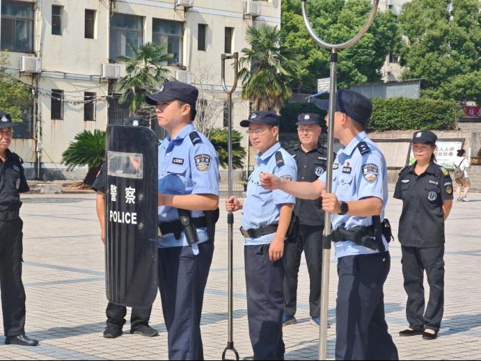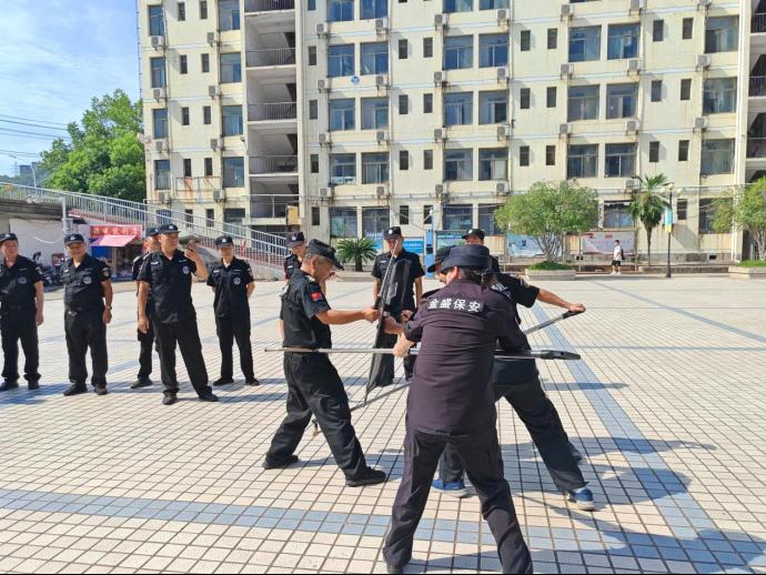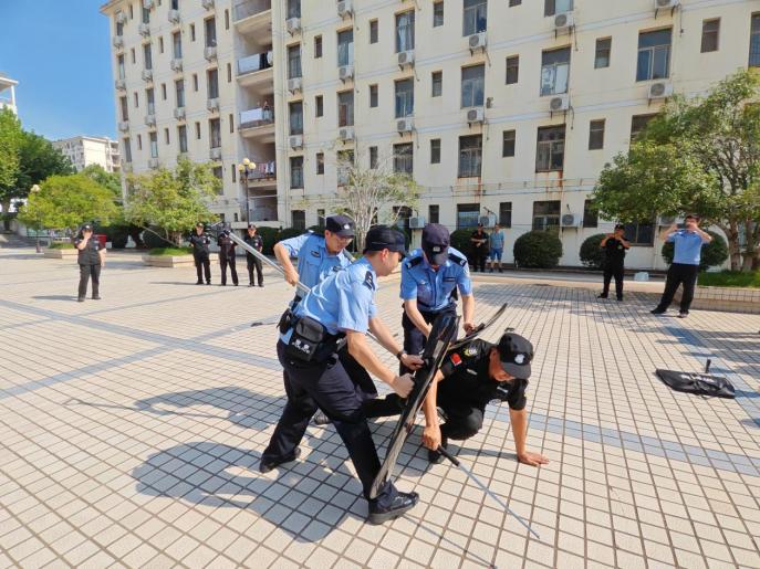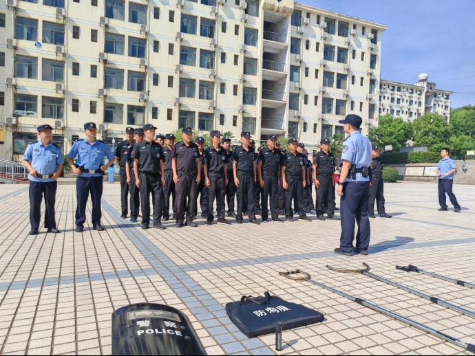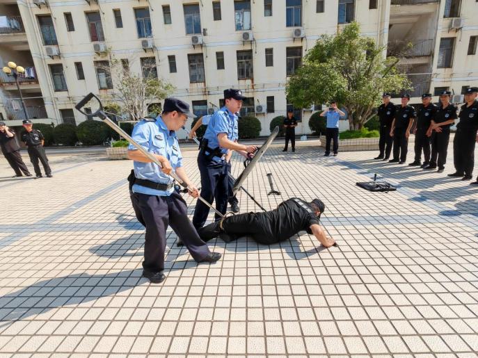 在本次培训过程中,公安民警运用理论阐释与实际操作演练相结合的方法,确保每一位参加培训的人员均能切实掌握实战技能。针对校园可能遭遇的各类突发情形,培训民警详尽阐释了“最小作战单元”的概念、组成部分以及协同作战的关键要点,使大家对其重要性和运行模式形成了深刻认知。在实际操作环节,民辅警于现场演示了盾牌、钢叉、警棍等警用器械的正确使用方式,从握持姿势、站位到攻防技巧,每一处细节都讲解得极为细致。随后,民辅警组织校园安保人员进行分组,模拟各类突发场景开展实战演练。各小组反应迅速,配合紧密,在运用盾牌进行防御、使用钢叉实施控制、及时报警并疏散师生等方面,充分彰显了“最小作战单元”的高效协同能力。