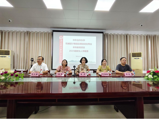 本网消息 9月10日,机电工程学院2025级中外合作办学新生见面会于K1-414会议室顺利开展。国际交流与合作处处长李莉、国际学院副院长李雅颖、机电工程学院党总支书记杨菁,副院长冯大鹏、教师代表、新生班主任出席见面会,2025级全体中外合作办学新生参会。