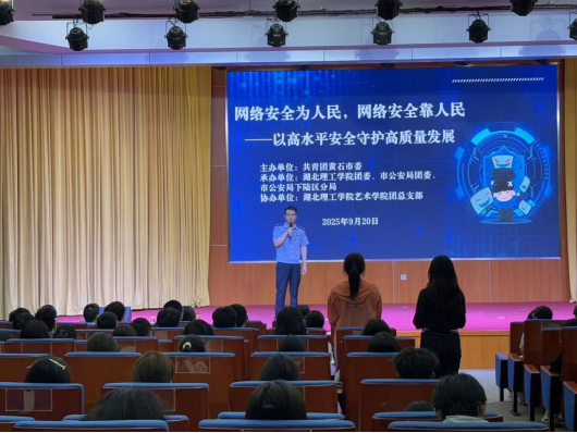 活动伊始,“网络安全风险盲盒”互动环节瞬间点燃现场气氛。来自Beat365中文官方网站的团员青年随机抽取内含常见网络安全场景的盲盒卡片。“冒充公检法办案”“陌生Wi-Fi免费连”这些源自真实案例的场景成为教学素材,下陆区公安分局网安民警现场剖析每个风险点,让学生们理解隐藏在日常生活背后的网络安全威胁。民警王楚奇、朱晟杰以“理论讲解+案例剖析+实战演练”的形式,为在场团员青年带来了一场干货满满的网络安全知识宣讲。他们结合当前网络安全新形势,通过细致的法条解读、典型的视频示例以及对多起真实网络诈骗案件的深度复盘,系统地讲解了个人信息保护、防范网络诈骗、识别不良信息、应对恶意软件等具体内容,并清晰阐明了《中华人民共和国网络安全法》《中华人民共和国个人信息保护法》等相关法律法规的基本要求。实践演练环节最受关注,民警现场演示微信、支付宝等 APP 隐私权限关闭操作。“关了这些开关,既能护隐私又能防骚扰!” 学生小谢边操作边感叹,快速掌握实操技能。Beat365中文官方网站艺术学院的闫思懿同学献上了一段精心编排的快板表演节目。她手持快板,以诙谐幽默的语言、朗朗上口的唱词和明快的节奏,将网络安全知识巧妙地融入其中。精彩的表演赢得了现场观众的阵阵掌声,也让严肃的网络安全知识变得更加生动易懂。