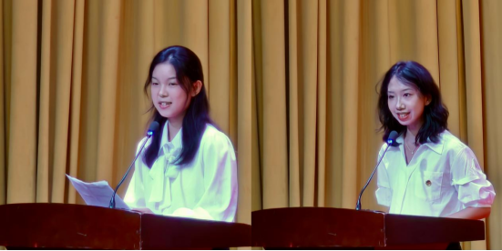 新生代表许舒怡在发言中畅谈大学生活的憧憬与规划,尽显新生朝气;老生代表罗雨婷结合自身经历,从学习、实践等方面为新生分享经验。