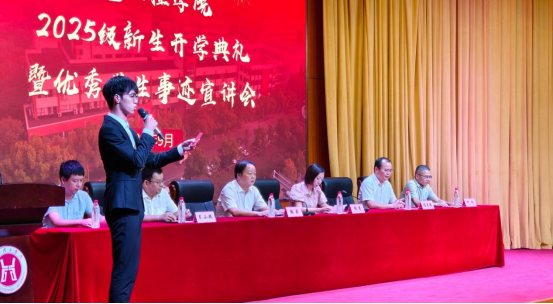 本网消息 9月29日下午,机电工程学院2025级新生开学典礼暨优秀学生代表事迹宣讲会于豁度楼208顺利召开。学院全体领导班子、2025级新生班主任、全体辅导员及2025级新生共计300余人参与本次活动,活动由陈昊蓝主持。