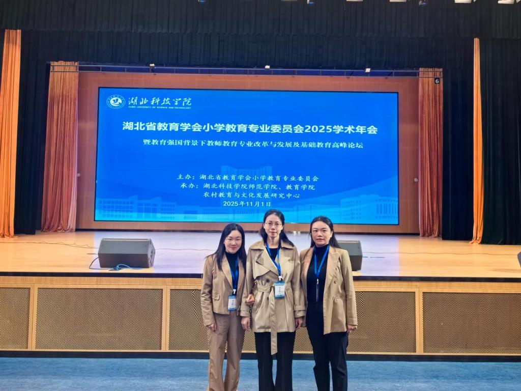 本网消息 11月1日,湖北省教学学会小学教育专业委员会2025年学术年会在湖北咸宁成功举行。Beat365官网师范学院副院长刘燕、小学教育专业教师王乐和罗司典参加了此次会议。
