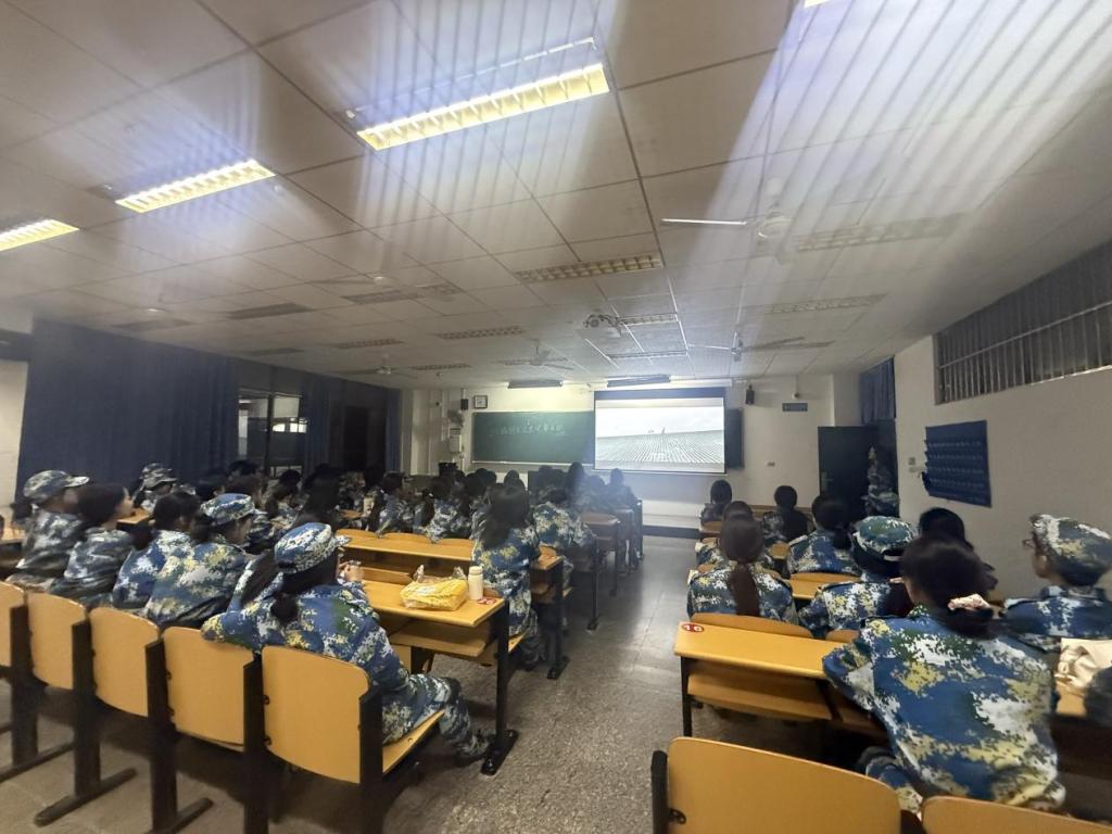 为丰富军训生活,深化国防教育,厚植家国情怀,学院在训练间隙精心组织了“红色光影”主题观影活动。全体新生分批观看了《建军大业》《红色娘子军》等经典红色影片。银幕上,革命先辈们为民族独立和人民解放抛头颅、洒热血的壮烈史诗,深深震撼了每一位同学的心灵。光影流转间,大家仿佛回到了那个烽火连天的年代,感受到了信仰的力量和理想的温度。这场精神洗礼,让同学们深刻理解了当今和平幸福生活的来之不易,进一步激发了爱国热情和历史责任感。