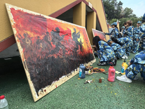 为充分发挥艺术学院学生的专业特长,打造具有艺术特色的军训文化,学院在军训团指导下,精心选拔了一批具备扎实绘画、设计与创作能力的新生,组建了这支“专业级”宣传队伍。他们既是刻苦训练的新兵,也是才华横溢的“文艺轻骑兵”,利用训练间隙,紧紧围绕军训主题,倾情投入到各项宣传工作中。