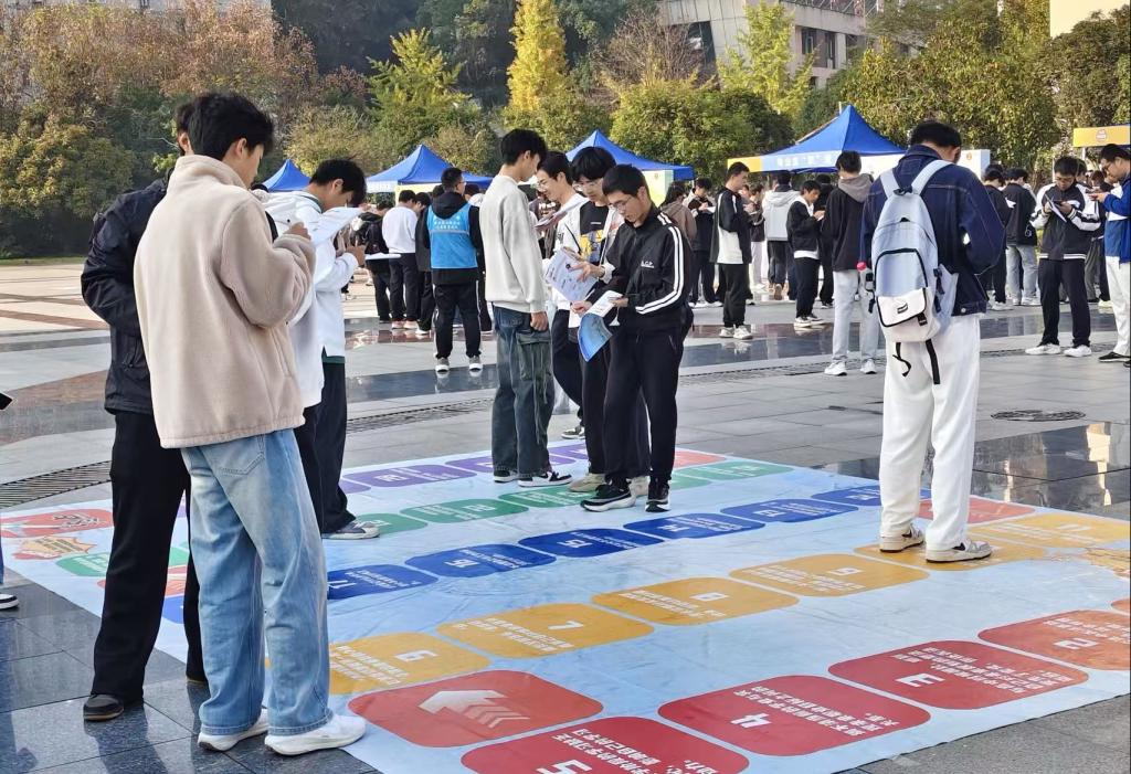 校内场活动深耕自我,贯通“学”与“用”。活动现场被划分成5个色彩鲜明的体验区域,11个关卡依次排开。设计了“专业-职业”映射探索等特色环节。学生不仅能完成自我认知,更能清晰看到所学专业如何链接地方重点产业,以及对应的职业能力要求。这不仅是生涯启蒙,更是应用型人才培养的第一课,让学生从“学什么”直接看到“未来做什么”,激发内生动力。