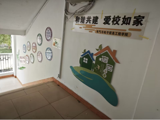 色彩明快的图文搭配、贴近日常的温馨倡议,让文化墙成为学生口中的“楼梯间小课堂”。“现在上下楼时,这些图文既醒目又暖心,比如‘宿舍内务整洁有序’的提示,会下意识提醒我整理书桌、规范内务。”2024 级电子信息专业的李同学笑着说。这些暖心细节让宿舍氛围愈发温馨有序,而文化墙的打造不仅美化了宿舍物理环境,更让文明规范、学风建设从“口头要求”落地为“日常浸润”,让宿舍空间真正成为学生成长的“文明驿站”。