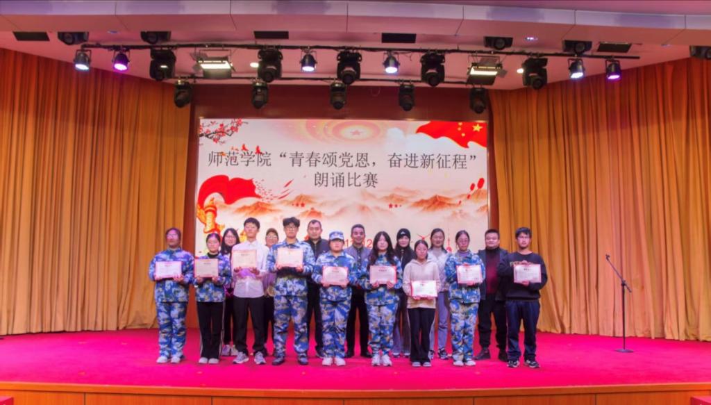 比赛现场气氛热烈,各班依次登台,以饱满的状态和富有感染力的朗诵,深情诠释对“青春”与“信仰”的理解。参赛作品包括《青春中国》《永远跟党走》《请党放心,强国有我》《觉醒》《信仰的炬火》《觉醒年代》《诗颂风华》《青春向党,师心筑梦》等,内容紧扣主题,表现形式多样,情感真挚动人,充分展现了师范生的专业素养和精神风貌。