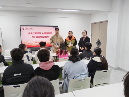 本网消息 为传承红色基因、弘扬爱国精神,12月18日,机电工程学院与外国语学院在求实一站式社区102室联合举办老兵讲故事活动。本次活动特邀学校退休教师、离退休第四党支部书记、校关工委“五老”王珊、机电工程学院退役士兵李文豪来分享他们的军旅生活与人生感悟,机电工程学院党总支部副书记熊泽敏、外国语学院党总支部副书记易定国及两院30余名同学参加了此次活动。