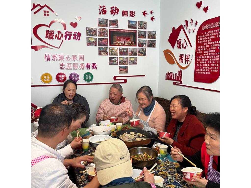 节日氛围里,暖心家园的家人们与工作人员、志愿者们齐聚一堂,共同开展了丰富多彩的活动。大家围坐在一起揉面、包包子,指尖翻飞间,一个个饱满圆润的包子渐渐成型,欢声笑语中满是家的味道;大家一同练习御太极,动作舒缓有序,在舒展身心的同时,也增进了彼此间的情谊。