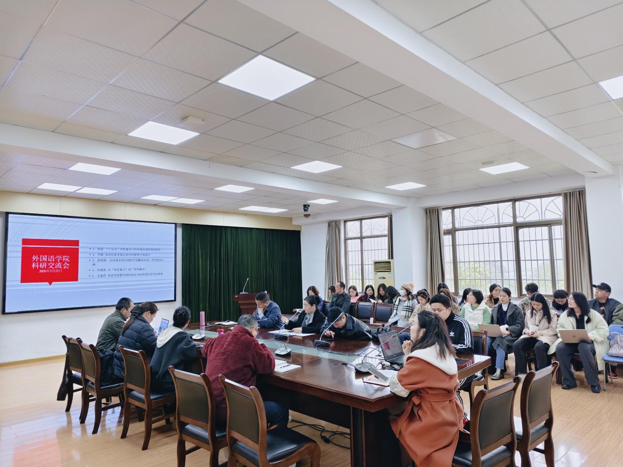 本网消息 3月23日下午,为凝聚科研力量、碰撞学术思想,进一步浓厚学院科研氛围,外国语学院举办新学期科研交流会。本次交流会由院长助理陈铭主持,学院全体专任教师参加。