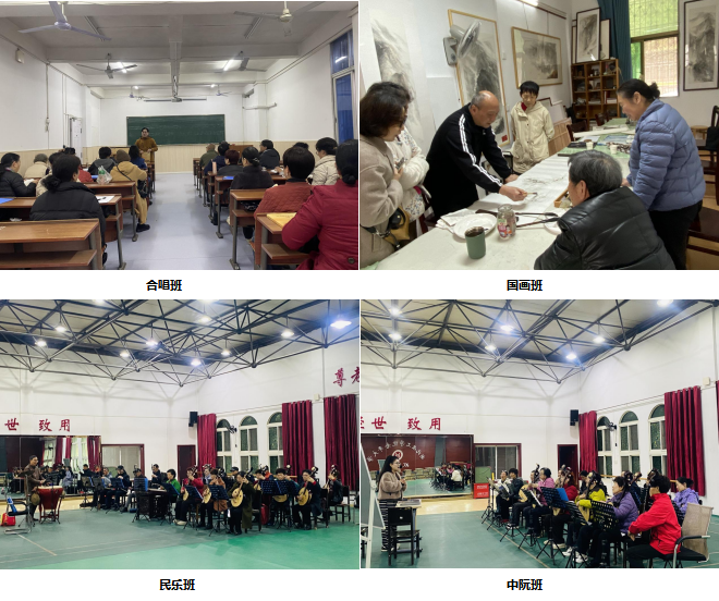 久别重逢喜,课堂焕生机。开学第一课,教学秩序井然,学习氛围浓厚。在中阮班,学员们在教师指导下轻拨琴弦,古韵悠扬,沉浸式感受民族乐器魅力;合唱班歌声婉转,和声饱满,唱响积极向上的精神风貌;国画课堂墨香四溢,授课教师以娴熟笔法勾勒云山瀑布,示范水墨章法,尽显传统书画意境;健身气功与太极班学员凝神调息,动静结合,体悟传统养生文化精髓;舞蹈班学员身姿轻盈,舞步灵动,尽显昂扬风采;民乐班丝竹和鸣,韵律和谐。各班教学有序开展,处处洋溢着乐学向上的浓厚氛围。