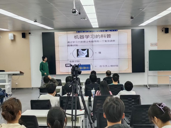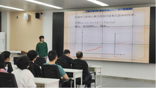 熊羽诺以人工智能的机器学习为切入点,并以震惊世界的ChatGPT为例,介绍了人工智能中深度学习的数学基础、算法基础和硬件基础。讲座从同学们熟知的函数、导数、多元函数的最小值等基本概念出发,引出ChatGPT的关键技术:大数据技术、人工神经网络、深度学习,简单介绍AI的不同研究和开发风格,最后,向大学生介绍了从基本框架开始构建开始掌握和研究深度学习的一般路线。讲座答疑环节,在座学者和学生纷纷提出问题,熊羽诺一一作答。